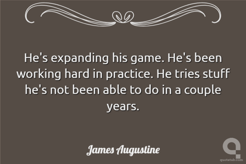 He's expanding his game. He's been working hard in practice. He tries stuff he's not been able to do in a couple years.