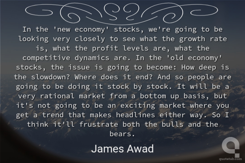 In the 'new economy' stocks, we're going to be looking very closely to see what the growth rate is, what the profit levels are, what the competitive dynamics are. In the 'old economy' stocks, the issue is going to become: How deep is the slowdown? Where does it end? And so people are going to be doing it stock by stock. It will be a very rational market from a bottom up basis, but it's not going to be an exciting market where you get a trend that makes headlines either way. So I think it'll frustrate both the bulls and the bears.