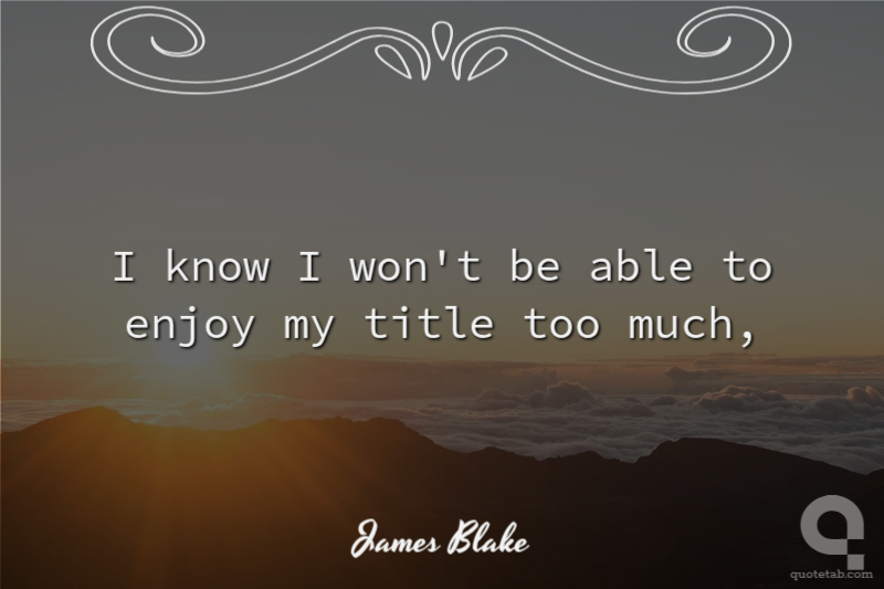 I know I won't be able to enjoy my title too much,