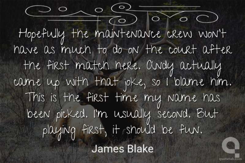 Hopefully the maintenance crew won't have as much to do on the court after the first match here. Andy actually came up with that joke, so I blame him. This is the first time my name has been picked. I'm usually second. But playing first, it should be fun.