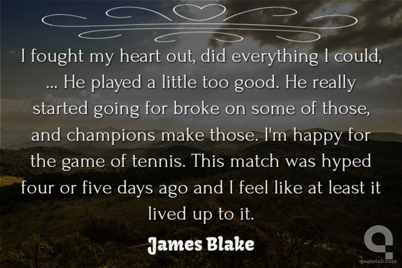 I fought my heart out, did everything I could, ... He played a little too good. He really started going for broke on some of those, and champions make those. I'm happy for the game of tennis. This match was hyped four or five days ago and I feel like at least it lived up to it.