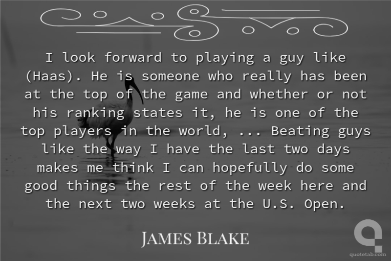I look forward to playing a guy like (Haas). He is someone who really has been at the top of the game and whether or not his ranking states it, he is one of the top players in the world, ... Beating guys like the way I have the last two days makes me think I can hopefully do some good things the rest of the week here and the next two weeks at the U.S. Open.