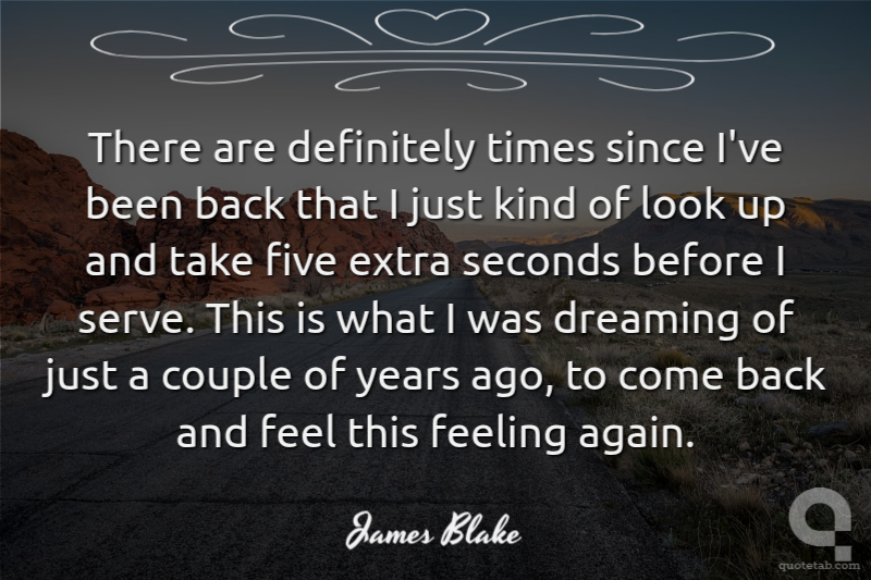 There are definitely times since I've been back that I just kind of look up and take five extra seconds before I serve. This is what I was dreaming of just a couple of years ago, to come back and feel this feeling again.