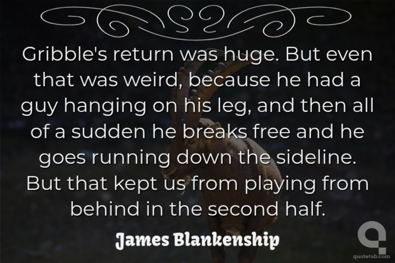 Gribble's return was huge. But even that was weird, because he had a guy hanging on his leg, and then all of a sudden he breaks free and he goes running down the sideline. But that kept us from playing from behind in the second half.