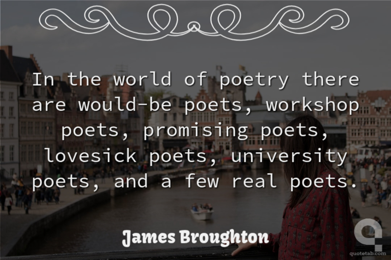 In the world of poetry there are would-be poets, workshop poets, promising poets, lovesick poets, university poets, and a few real poets.