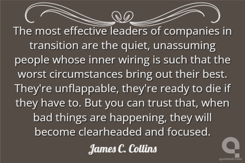 The most effective leaders of companies in transition are the quiet, unassuming people whose inner wiring is such that the worst circumstances bring out their best. They're unflappable, they're ready to die if they have to. But you can trust that, when bad things are happening, they will become clearheaded and focused.