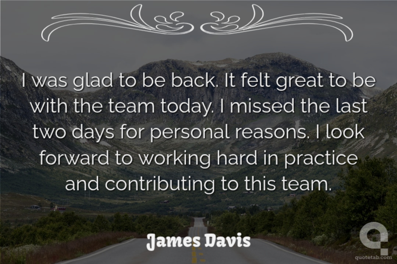 I was glad to be back. It felt great to be with the team today. I missed the last two days for personal reasons. I look forward to working hard in practice and contributing to this team.