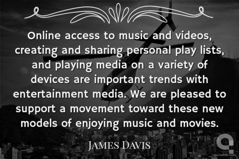 Online access to music and videos, creating and sharing personal play lists, and playing media on a variety of devices are important trends with entertainment media. We are pleased to support a movement toward these new models of enjoying music and movies.