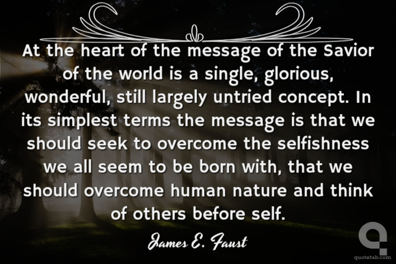 At the heart of the message of the Savior of the world is a single, glorious, wonderful, still largely untried concept. In its simplest terms the message is that we should seek to overcome the selfishness we all seem to be born with, that we should overcome human nature and think of others before self.