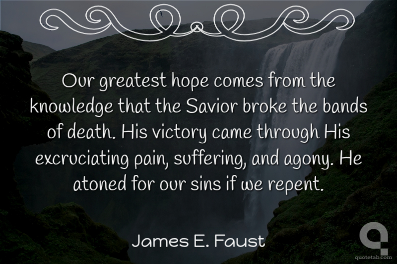 Our greatest hope comes from the knowledge that the Savior broke the bands of death. His victory came through His excruciating pain, suffering, and agony. He atoned for our sins if we repent.