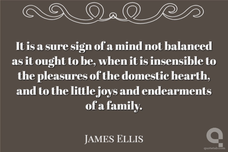 It is a sure sign of a mind not balanced as it ought to be, when it is insensible to the pleasures of the domestic hearth, and to the little joys and endearments of a family.