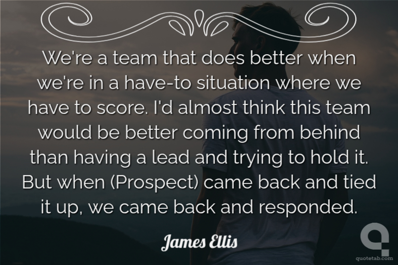 We're a team that does better when we're in a have-to situation where we have to score. I'd almost think this team would be better coming from behind than having a lead and trying to hold it. But when (Prospect) came back and tied it up, we came back and responded.