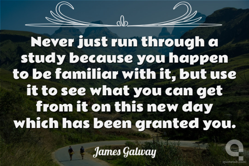 Never just run through a study because you happen to be familiar with it, but use it to see what you can get from it on this new day which has been granted you.