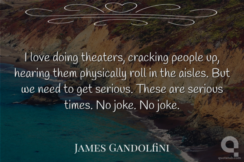 I love doing theaters, cracking people up, hearing them physically roll in the aisles. But we need to get serious. These are serious times. No joke. No joke.