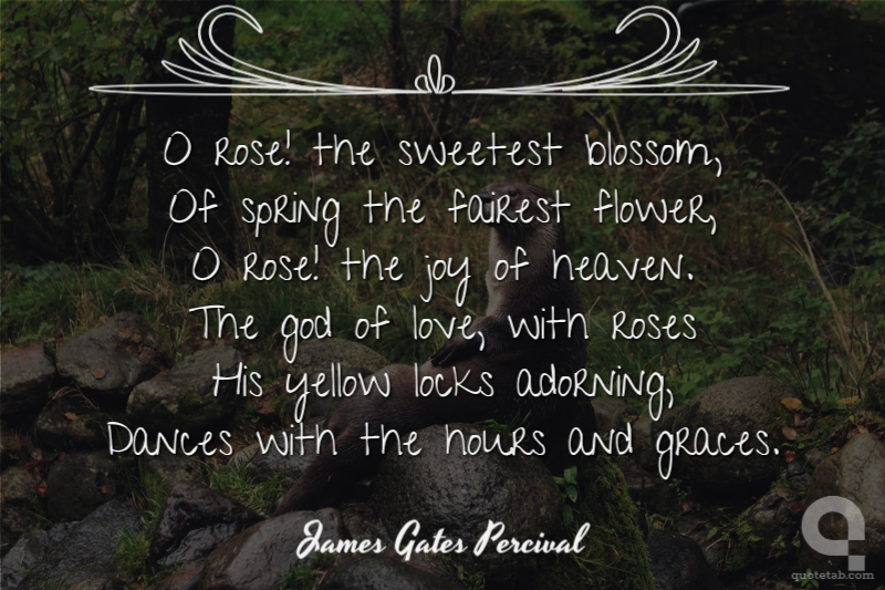 O rose! the sweetest blossom, Of spring the fairest flower, O rose! the joy of heaven. The god of love, with roses His yellow locks adorning, Dances with the hours and graces.