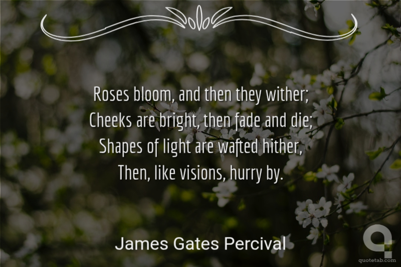 Roses bloom, and then they wither; Cheeks are bright, then fade and die; Shapes of light are wafted hither, Then, like visions, hurry by.