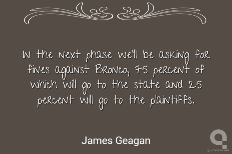 In the next phase we'll be asking for fines against Bronco, 75 percent of which will go to the state and 25 percent will go to the plaintiffs.