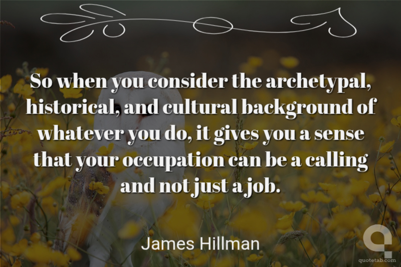 So when you consider the archetypal, historical, and cultural background of whatever you do, it gives you a sense that your occupation can be a calling and not just a job.