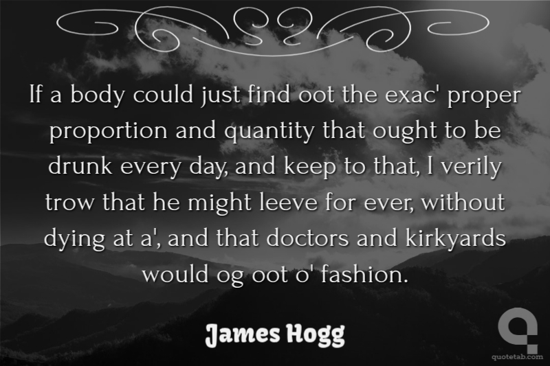 If a body can just find oot the exac' proper proportion and quantity that ought to be drunk every day and keep to that, I verily throw that he might leeve forever without dying at all, and that doctors and kirkyards would go oot o' fashion