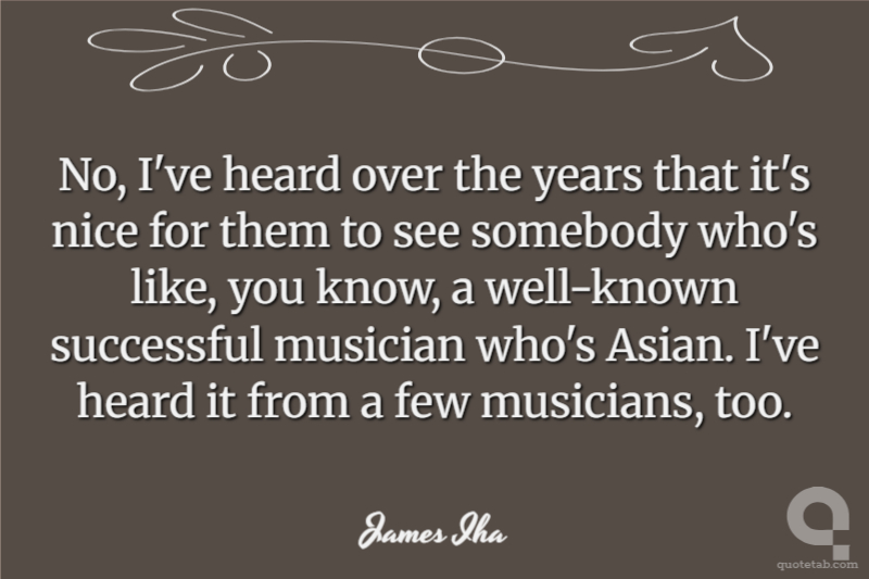 No, I've heard over the years that it's nice for them to see somebody who's like, you know, a well-known successful musician who's Asian. I've heard it from a few musicians, too.
