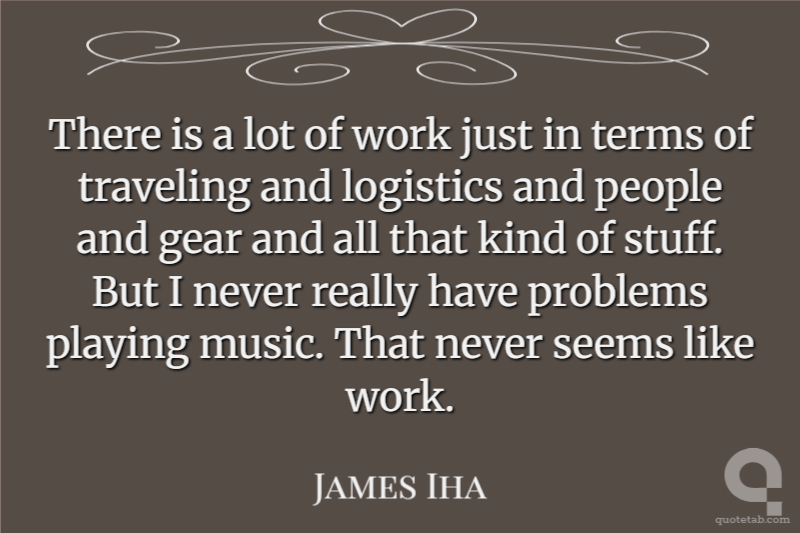 There is a lot of work just in terms of traveling and logistics and people and gear and all that kind of stuff. But I never really have problems playing music. That never seems like work.