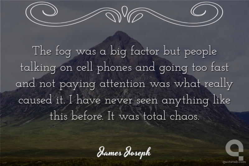 The fog was a big factor but people talking on cell phones and going too fast and not paying attention was what really caused it. I have never seen anything like this before. It was total chaos.