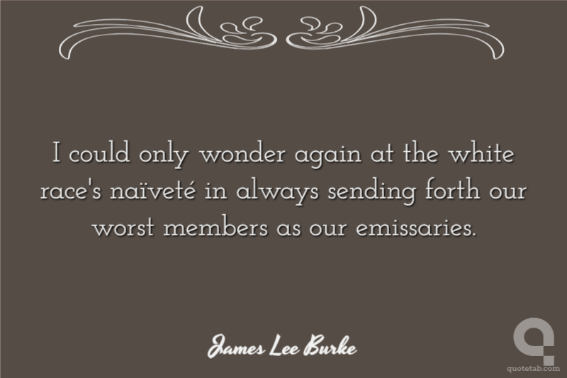 I could only wonder again at the white race's naïveté in always sending forth our worst members as our emissaries.