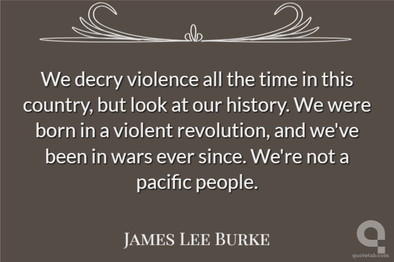 We decry violence all the time in this country, but look at our history. We were born in a violent revolution, and we've been in wars ever since. We're not a pacific people.