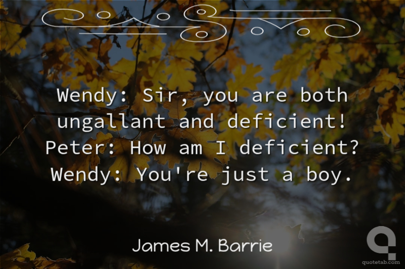 Wendy: Sir, you are both ungallant and deficient! Peter: How am I deficient? Wendy: You're just a boy.