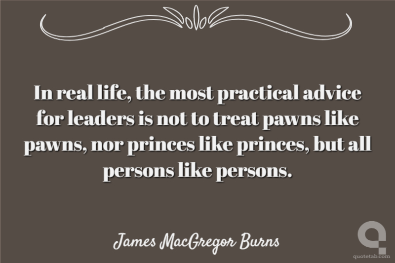 In real life, the most practical advice for leaders is not to treat pawns like pawns, nor princes like princes, but all persons like persons.