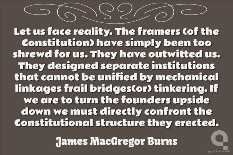 Let us face reality. The framers (of the Constitution) have simply been too shrewd for us. They have outwitted us. They designed separate institutions that cannot be unified by mechanical linkages frail bridges(or) tinkering. If we are to turn the founders upside down we must directly confront the Constitutional structure they erected.