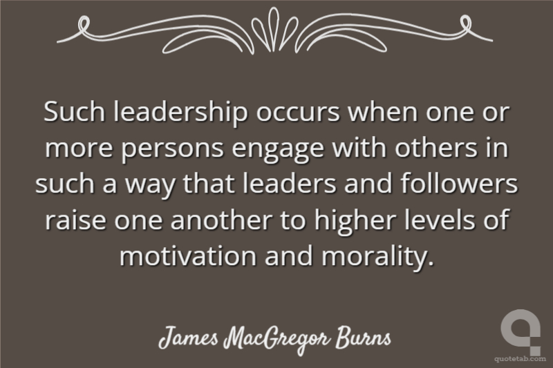 Such leadership occurs when one or more persons engage with others in such a way that leaders and followers raise one another to higher levels of motivation and morality.