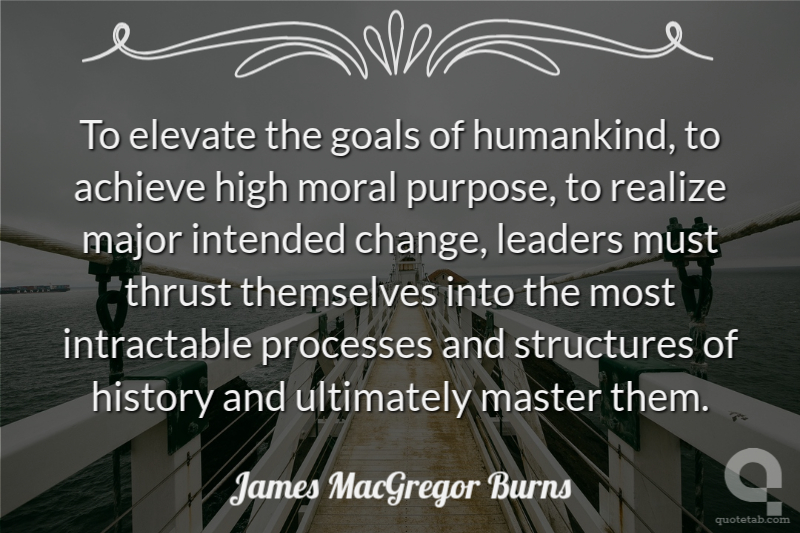 To elevate the goals of humankind, to achieve high moral purpose, to realize major intended change, leaders must thrust themselves into the most intractable processes and structures of history and ultimately master them.