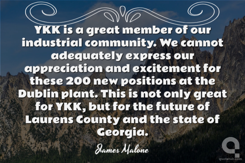 YKK is a great member of our industrial community. We cannot adequately express our appreciation and excitement for these 200 new positions at the Dublin plant. This is not only great for YKK, but for the future of Laurens County and the state of Georgia.