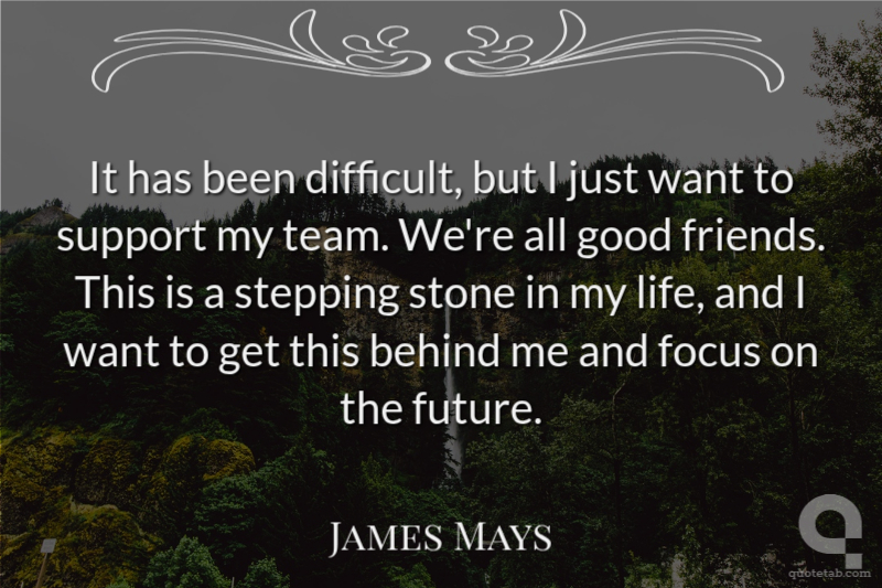 It has been difficult, but I just want to support my team. We're all good friends. This is a stepping stone in my life, and I want to get this behind me and focus on the future.
