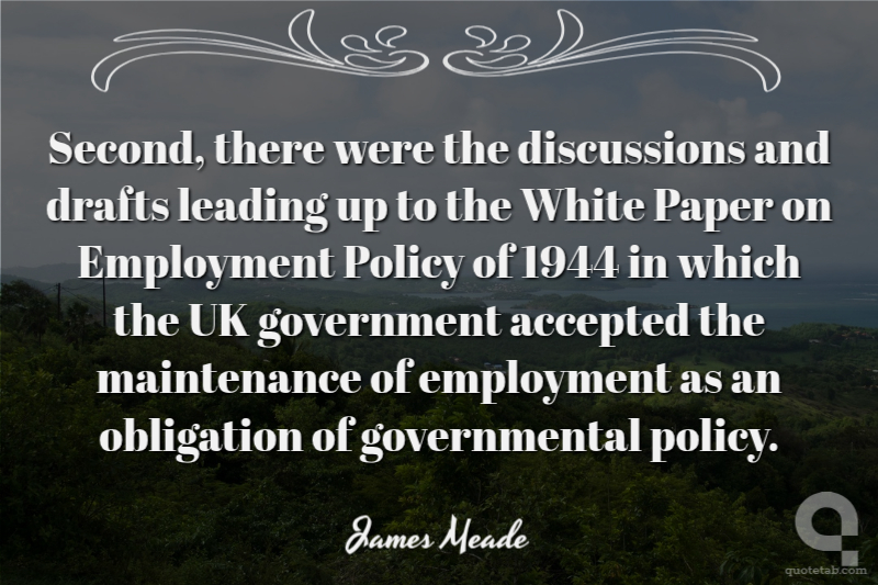 Second, there were the discussions and drafts leading up to the White Paper on Employment Policy of 1944 in which the UK government accepted the maintenance of employment as an obligation of governmental policy.