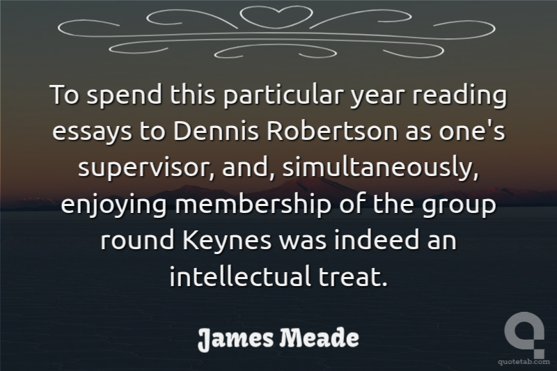 To spend this particular year reading essays to Dennis Robertson as one's supervisor, and, simultaneously, enjoying membership of the group round Keynes was indeed an intellectual treat.