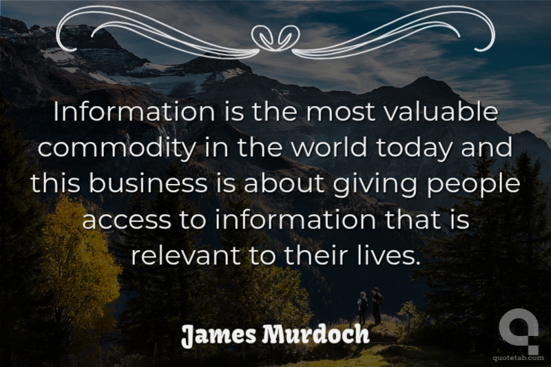 Information is the most valuable commodity in the world today and this business is about giving people access to information that is relevant to their lives.