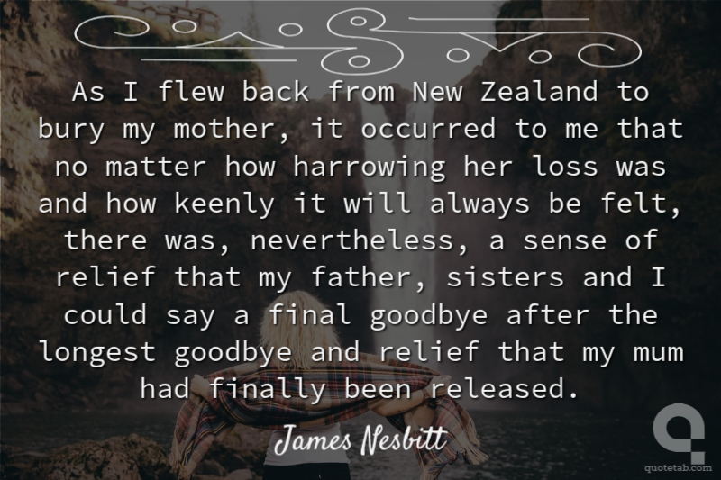 As I flew back from New Zealand to bury my mother, it occurred to me that no matter how harrowing her loss was and how keenly it will always be felt, there was, nevertheless, a sense of relief that my father, sisters and I could say a final goodbye after the longest goodbye and relief that my mum had finally been released.