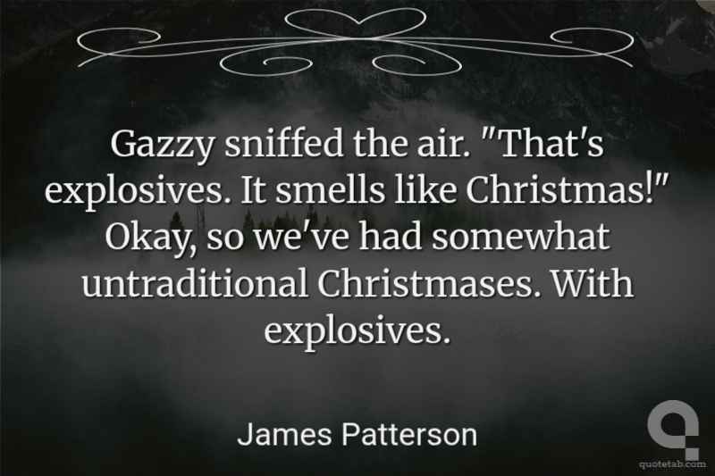 Gazzy sniffed the air. "That's explosives. It smells like Christmas!" Okay, so we've had somewhat untraditional Christmases. With explosives.