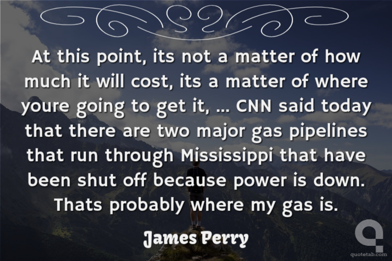 At this point, its not a matter of how much it will cost, its a matter of where youre going to get it, ... CNN said today that there are two major gas pipelines that run through Mississippi that have been shut off because power is down. Thats probably where my gas is.