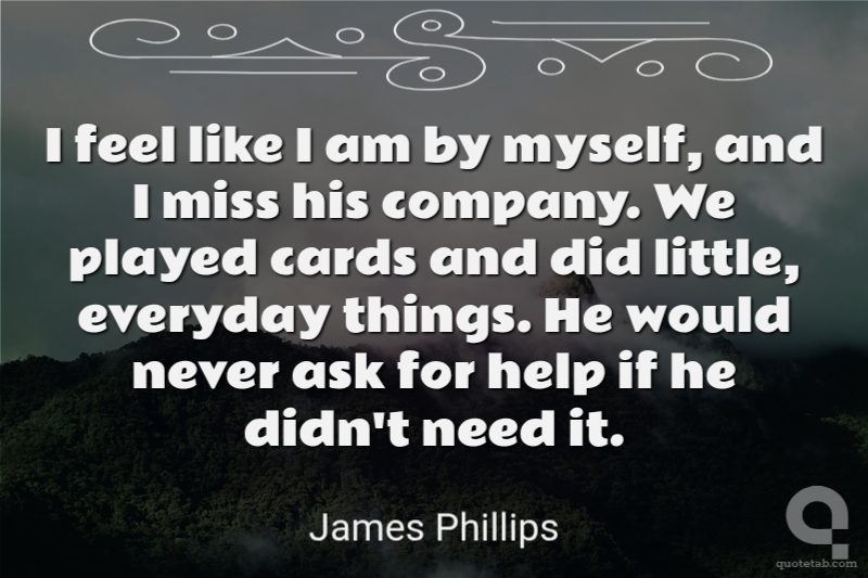 I feel like I am by myself, and I miss his company. We played cards and did little, everyday things. He would never ask for help if he didn't need it.