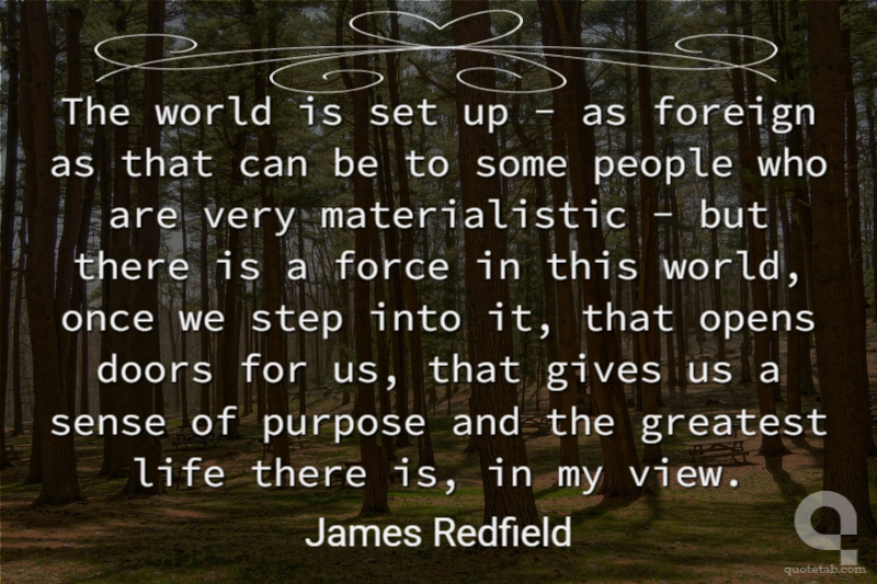 The world is set up - as foreign as that can be to some people who are very materialistic - but there is a force in this world, once we step into it, that opens doors for us, that gives us a sense of purpose and the greatest life there is, in my view.