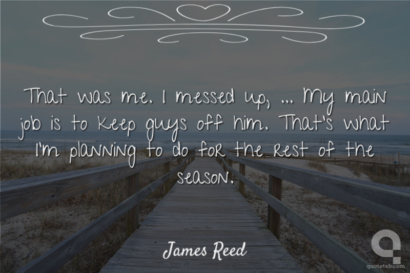 That was me. I messed up, ... My main job is to keep guys off him. That's what I'm planning to do for the rest of the season.