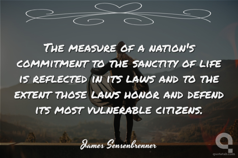The measure of a nation's commitment to the sanctity of life is reflected in its laws and to the extent those laws honor and defend its most vulnerable citizens.