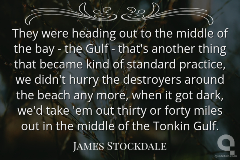 They were heading out to the middle of the bay - the Gulf - that's another thing that became kind of standard practice, we didn't hurry the destroyers around the beach any more, when it got dark, we'd take 'em out thirty or forty miles out in the middle of the Tonkin Gulf.