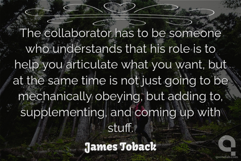 The collaborator has to be someone who understands that his role is to help you articulate what you want, but at the same time is not just going to be mechanically obeying, but adding to, supplementing, and coming up with stuff.