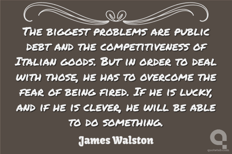 The biggest problems are public debt and the competitiveness of Italian goods. But in order to deal with those, he has to overcome the fear of being fired. If he is lucky, and if he is clever, he will be able to do something.