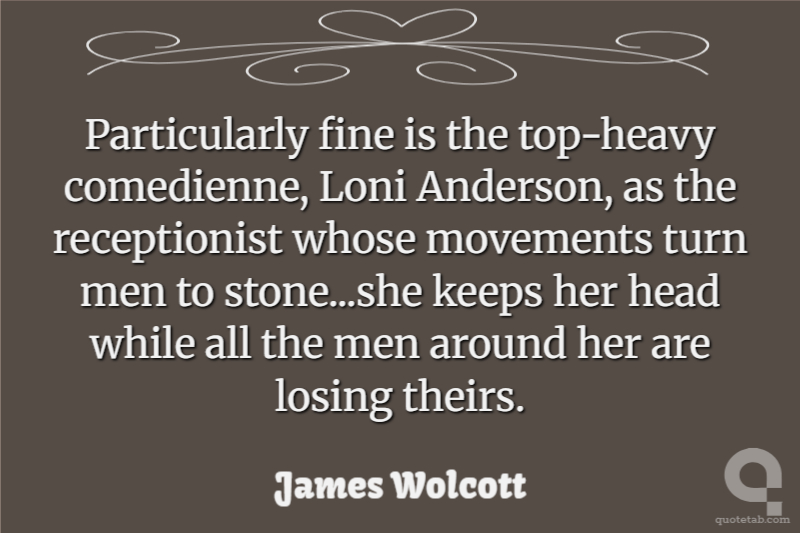 Particularly fine is the top-heavy comedienne, Loni Anderson, as the receptionist whose movements turn men to stone...she keeps her head while all the men around her are losing theirs.