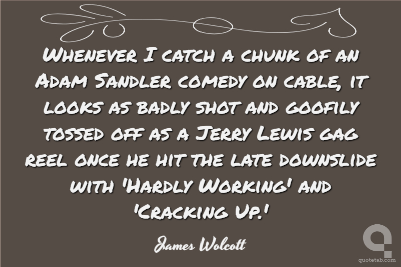 Whenever I catch a chunk of an Adam Sandler comedy on cable, it looks as badly shot and goofily tossed off as a Jerry Lewis gag reel once he hit the late downslide with 'Hardly Working' and 'Cracking Up.'